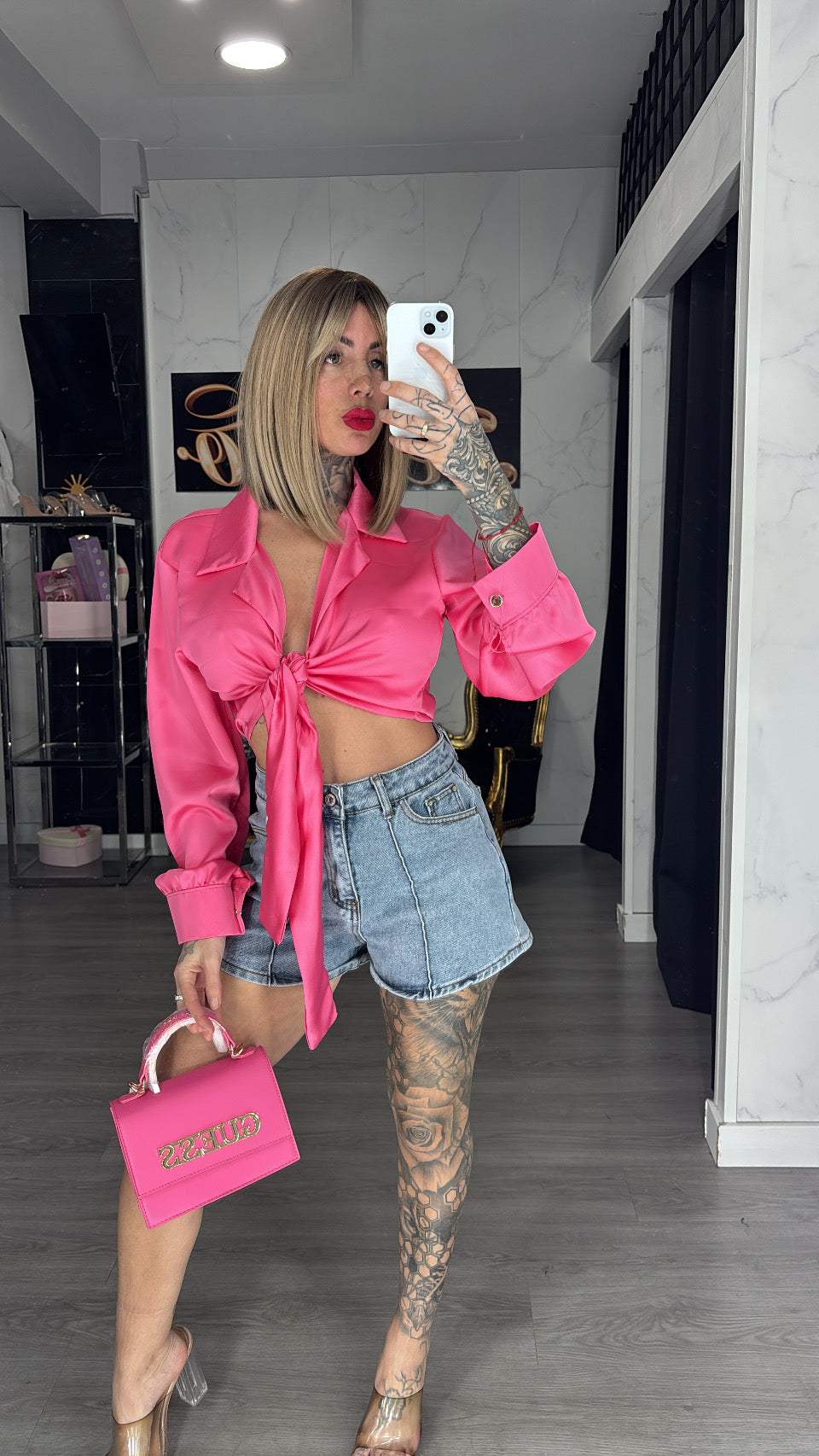 Camisa nudo fucsia