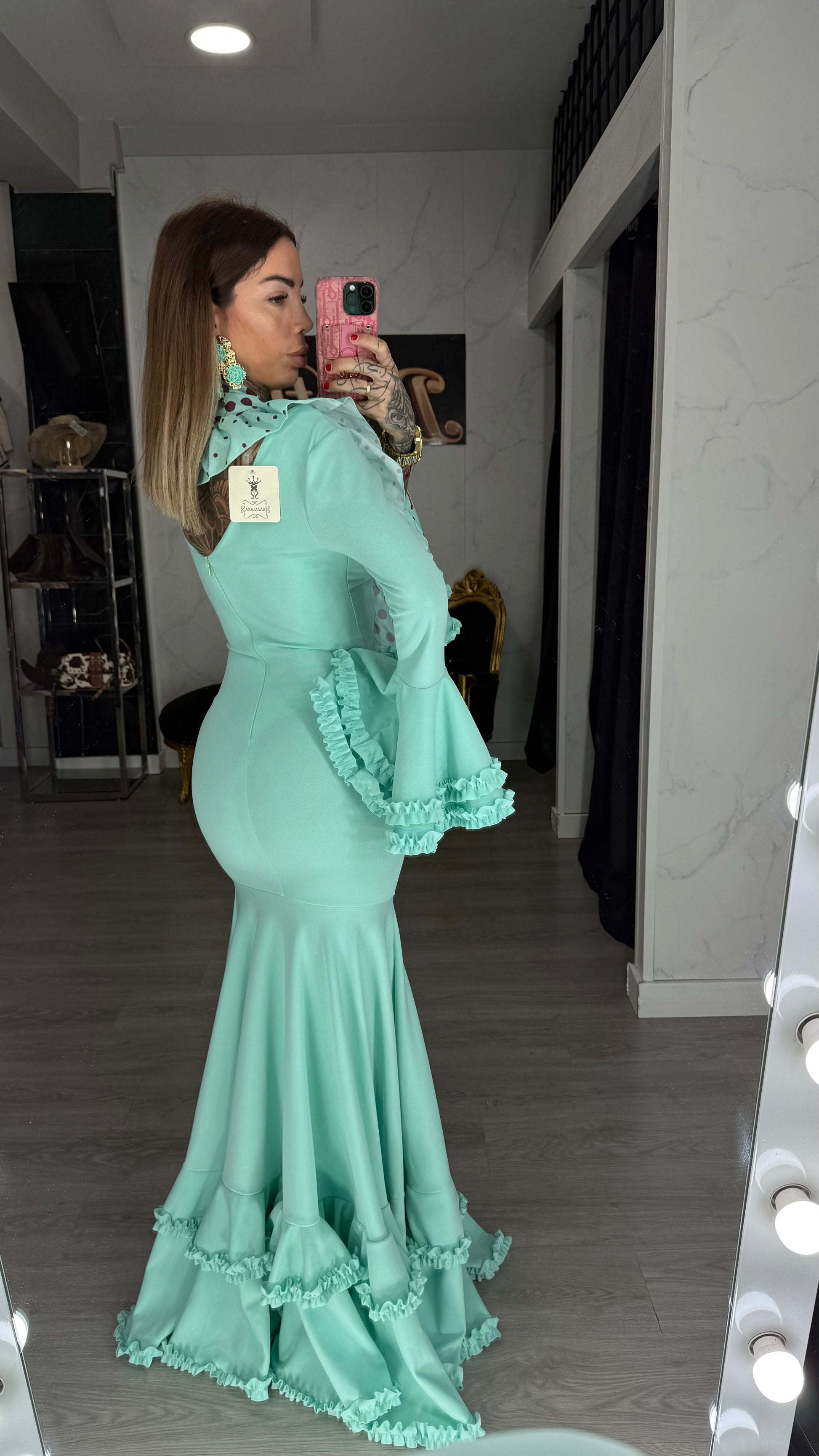 Vestido y pañuelo turquesa